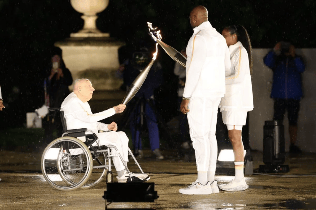 这位正在2024巴黎夏日奥运会揭幕式上担任倒数第二棒火炬手的传奇白叟,以坐正在轮椅上高举火炬、将圣火传送给柔道巨星特迪·里内尔(Teddy Riner)和短跑名将玛丽-乔泽·佩雷克(Marie-José Pérec)的画面,了世界。那一刻,他意味着一代又一代法国活动员的延续。
