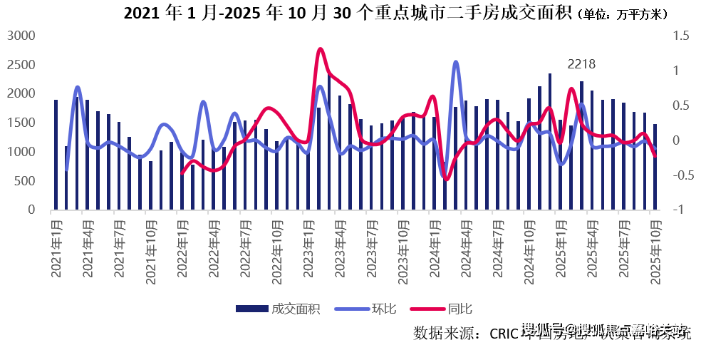 从累计环境来看,前10月30个沉点城市二手房累计成交同比增加连结正在6%,而30个沉点城市新房成交累计同比下跌7%。从一二手房累计成交面积来看,本年前10月30个沉点城市一二手房成交总面积为27443万平方米,取2024年同期持平。