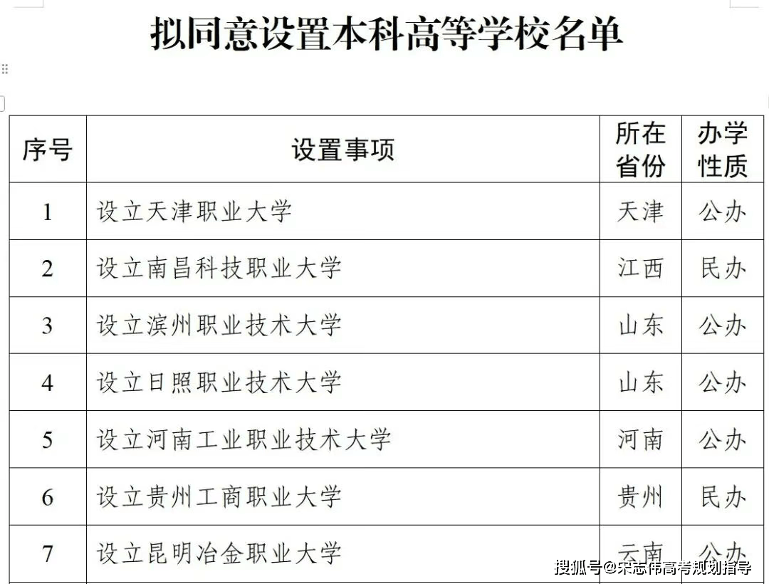 对于家长和考生来说,“新大学”的呈现,意味着报考的“新机缘”来了。 而正在近年择校时,越来越多中高分段的考生起头关心“职业本科大学”,“学手艺类专业+拿本科文凭”是这类院校吃喷鼻的缘由。 2026年1月4日,教育部发布公示:同意设置15所“新大学”,此中有7所是职业本科院校,一路来看看这7所“新大学”吧!
